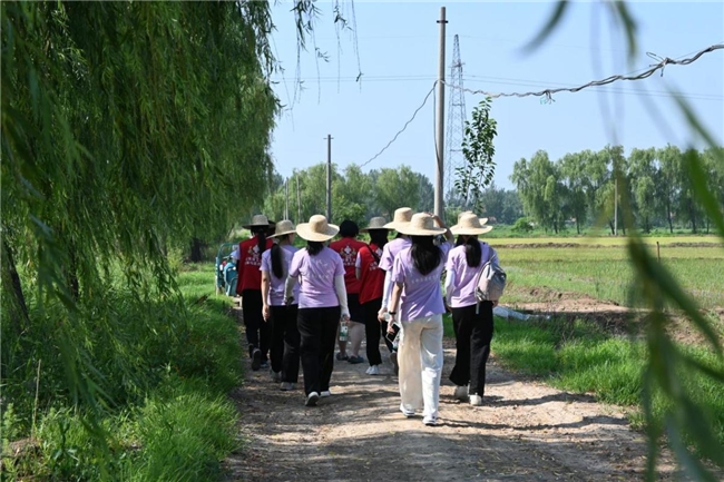 在走访调研过程中,实践团成员了解到,荒土地农业科技有限公司以盐碱地治理与功能型作物培育为核心,在当地打造了规模化试验基地。在科技员刘主任的耐心讲解下,实践团重点考察了功能性大米的培育项目。功能性大米的培育周期需要经过十轮的筛选,最后每个水稻品种仅保留18株核心种苗,累计培育近2000个品种,在培育过程中,科研人员会通过人工授粉、插牌标记等方式,实时监测苗情动态,精准筛选耐盐碱、抗病性强的优良基因。