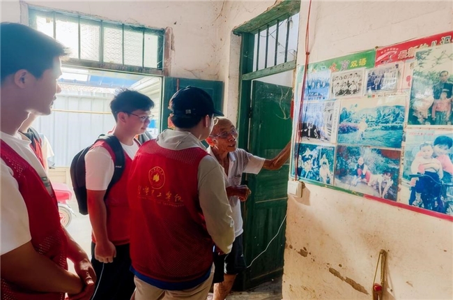 活动准备期间,团队队长梁积贺积极联络南宁市武鸣区政府,在政府支持协调下,顺利与双桥镇下渌村村委对接,为活动开展筑牢基础。活动当日,烈日炎炎,队员们额间挂着汗珠,却步伐坚定,怀揣对退伍老兵的敬意与慰问,赴两位爷爷的“红色之约”。