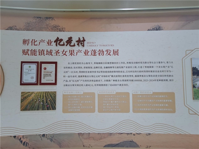 走进北坡镇圣女果现代农业产业园,连片的银色温室大棚蔚为壮观。实践团的VR镜头全景捕捉万亩种植区的蓬勃生机:标准化滴灌系统高效运转,串串饱满红果缀满枝头,生动呈现“中国圣女果之乡”的科技化、规模化种植典范。