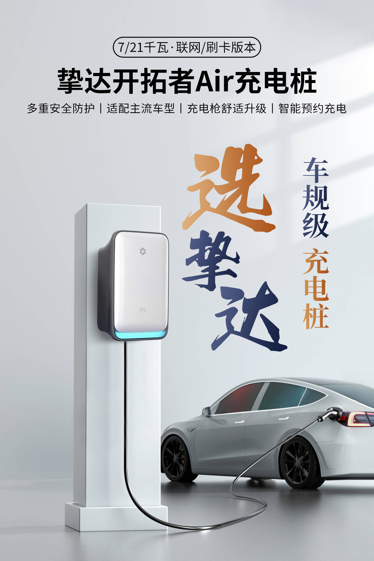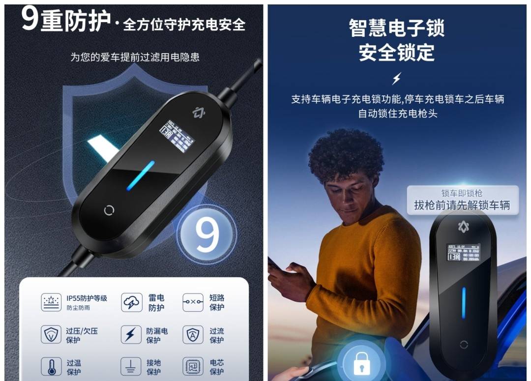 7 kW/21 kW双功率、IP55全机身防水、可换彩壳,支持蓝牙无感充电。