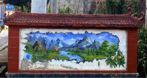 团队在镇政府食堂创作融合藤编元素的“节约粮食”主题墙绘,在桂花村村口绘制“稻浪生态图”,总面积约20平方米。墙绘完成后,成为当地宣传文明生活方式与美化环境的重要窗口。