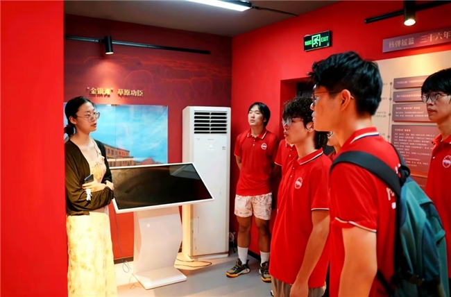 精神传承首在知其所来。7月21日,团队走进中国科学技术大学老图书馆“两弹一星”专题展区。泛黄的手稿、斑驳的实验仪器,见证了上世纪五六十年代科研工作者“隐姓埋名,以身许国”的峥嵘岁月。成员驻足于记录邓稼先、钱学森等先辈事迹的展板前,从“沙拌饭”“地窝子”的细节中,体悟“热爱祖国、自力更生、大力协同、勇攀高峰”的十六字精神内核。