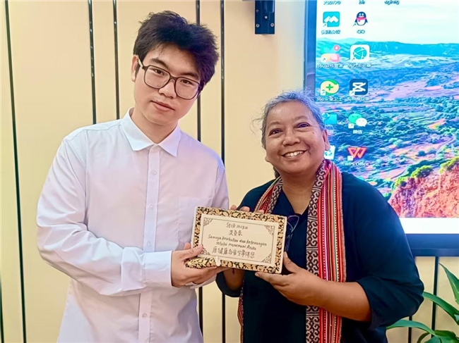 ▲图1为团队成员(黄瑞辉)向印尼友人赠送艾条