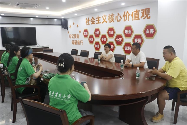图为实践队员对百花村花卉经销商于会议室开展访谈交流。方博文 供图