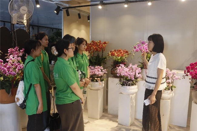 图为花卉店主为实践队队员讲解花卉制作及销售过程。方博文 供图
