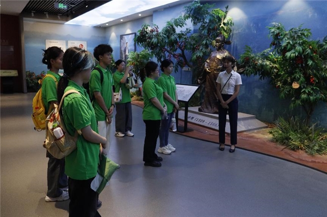 图为实践队队员在荔枝博物馆讲解员的带领下了解荔枝故事。方博文 供图
