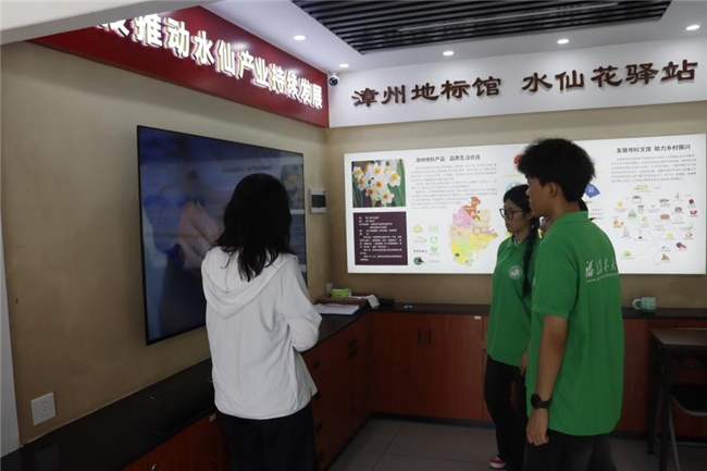 图为水仙花海讲解员为实践队员介绍水仙花的种植和雕刻艺术。方博文 供图