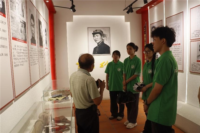 图为王占春烈士纪念馆馆长向实践队队员介绍烈士王占春的生平。方博文 供图