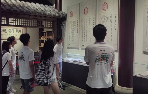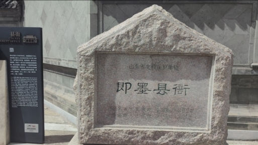毗邻县衙的即墨考院,是清代胶东地区规模最大的科举考场。团队在这里见证了当年学子应试的场景:整齐排列的考棚里,摆放着笔墨纸砚。墙上贴着“金榜题名”的告示,包含着对学子的美好期许。团队成员们驻足于考院一侧的科举制度介绍展墙前,细细研读着科举考试的内容和选拔制度,仿佛能透过文字窥见当年考场内士子们奋笔疾书的身影。