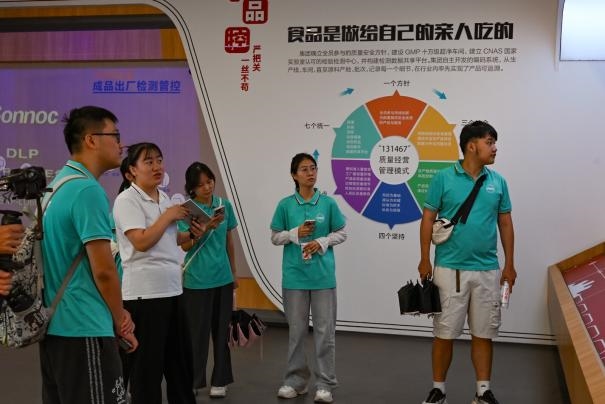 实践团走进落地小岗的知名企业——盼盼食品集团进行深度参观。成员们实地考察现代化生产车间,了解企业如何依托小岗优质农产品资源,打造精深加工产业链。通过与负责人交流,团队重点调研了“公司+基地+农户”模式如何保障原料品质、稳定订单收购,有效带动本地种植业升级、创造大量就业岗位,彰显龙头企业作为产业引擎在推动小岗实现“产城融合、三产联动”振兴路径中的关键作用。