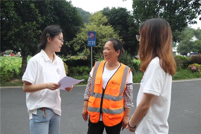 图为实践团成员李荣荣采访清溪村环卫工人进行调研。彭晨 供图