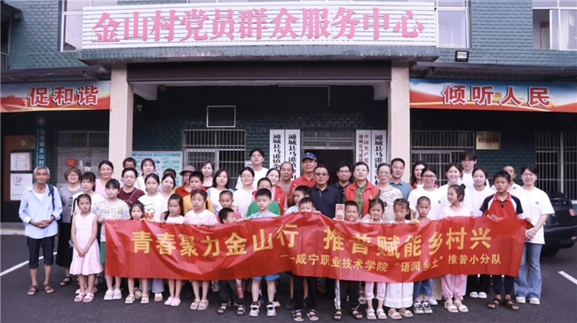 2025年7月,咸宁职业技术学院“语润乡土”推普小分队一行前往湖北省通城县马港镇金山村,开展了为期五天的暑期“三下乡”社会实践活动。此行以国家通用语言文字推广为核心,聚焦乡村儿童、老年群体与产业发展,通过公益课堂、走访调研、产业赋能等方式,助力打通乡村振兴“最后一公里”。