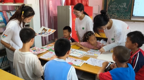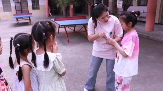 实践团队在金山村石源小学开设的“推普公益课堂”成为孩子们的暑期乐园。每日上午,为25名留守儿童提供“文化浸润式”普通话学习指导。实践队员巧妙将普通话教学与中华优秀传统文化、爱国主义教育及通城县乡土风情相融合,通过基础正音、气息训练、趣味游戏、故事分享、诗词朗诵、话剧表演等丰富形式,为孩子们打开语言之门,在心中播下热爱母语、振兴家乡的希望种子。“以前说普通话有点害羞,现在敢大声朗诵了!”一名参与课堂的小学生说。