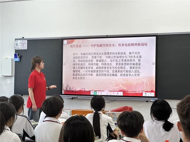 7月8日下午,实践团走进阿鲁科尔沁旗天山一中,开展“红色基因铸魂,科技赋能未来”主题宣讲,以实际行动践行习近平总书记“要在教育‘双减’中做好科学教育加法,激发青少年好奇心、想象力、探求欲”的重要指示精神。实践团成员胡彤以“永不消逝的电波”为引,结合学校在电磁频谱攻防领域的研究成果,生动讲解现代科技如何守护国家安全;“E唯”协会成员邸子涵从世界水下机器人大赛夺冠经历到E唯冠军团队文化,全面展现了大学生科创的巨大魅力;团队成员张宇哲结合历史和当下,为同学们讲解了哈军工精神的传承和发展;指导教师孙源就学校基本情况进行介绍,并解答了同学们现阶段的疑问。宣讲结束后,一位蒙古族学生发出了“原来电磁频谱安全离我们这么近!”的感悟。