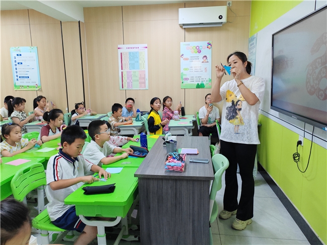 若说剪纸是民俗文化的“视觉叙事”,吕剧与山东快书便是其“声音注脚”。服务队带领孩子们走进长行艺术团驿站,让剪纸中静态的民俗符号,在说唱艺术中“活”起来,形成“观其形、听其声、悟其魂”的立体传承体验。志愿者以孩童视角搭建认知桥梁:“吕剧是山东人的‘乡音歌’,坠琴伴奏就像方言里的亲切尾音,一听就暖到心底”;“山东快书的竹板声是‘会说话的节奏’,高元钧先生用它讲活了齐鲁故事,让乡音成了文化名片”。更妙的是“曲艺知识抢答赛”的跨艺类设计:“端午挂艾草的吕剧唱段,剪纸用什么图案呼应?”“武松打虎的快书故事,剪纸靠什么花纹显虎威?”——在“坠琴”“竹板”等知识点的抢答中,孩子们自然关联剪纸符号,让视觉与听觉非遗在互文中共构文化整体认知,深化对“非遗是生活的艺术”的理解。