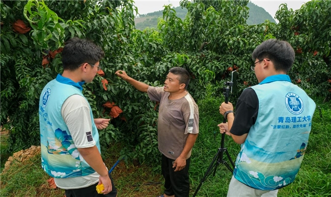 直播现场,村委书记王少保应邀助阵,深入解析蒙阴桃的品种优势与科学种植知识。实践团成员则带领观众“云游”桃园,实景展示新鲜采摘过程,凸显“新鲜现摘”“原生态”核心卖点。果农现身直播间,深情讲述从“靠天吃饭”到科学种植的转型故事,展现政策支持下产业升级的蓬勃活力。本次直播采用“实景展示+深度解读”的创新形式,成功吸引1200余人次观看,生动展现了蒙阴桃的独特魅力。直播后,团队及时复盘分析数据并反馈,形成“宣传-反馈-再行动”闭环,持续为拓宽农产品销路、促进乡村振兴贡献力量。