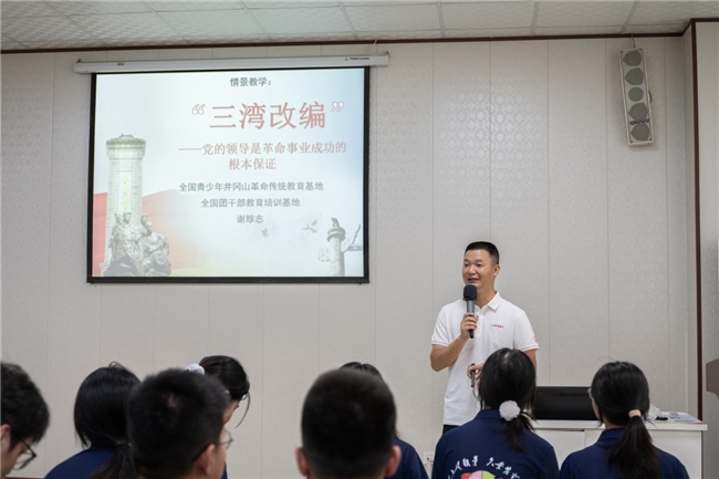(图为井冈山革命烈士陵园团中央井冈山中心老师讲解)