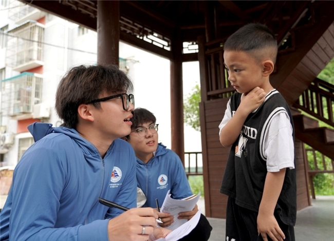 次日,团队来到接官亭社区,和社区工作人员一同入户调研并推广普通话。社区里,方言带来的交流问题随处可见: “要水赶(管)不?”社区五金店老板抄起铁管脱口而出。75岁的张奶奶更着急——孙子教视频通话,她总把“验证码”说成“验正码”,卖面阿姨吆喝“新宣(鲜)的面嘞!”,高二女生读绕口令时“n/l”音分不清。队员们针对这些情况,现场进行了发音指导,详细的对村民们的普通话发音等等需求进行了矫正与帮助,并且对多户村民进行了普通话调研与推广,取得了很大进展。