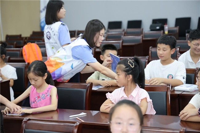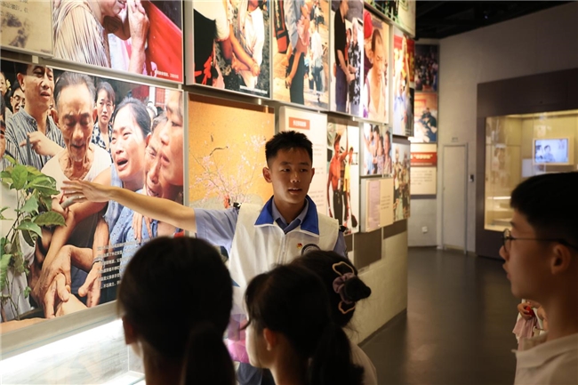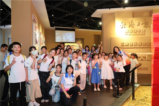 7月23日,“童声伴峡忆——小小访客听移民故事‘普语课堂’活动走进纪念馆。实践团选拔的四名讲解员,用标准普通话为孩子们生动讲述“万人送别移民船队”“移民干部带病工作”等展品背后的故事。在“故土难离”展区,讲解员结合实物展品讲解移民如何通过普通话学习适应新家园,孩子们认真记录要点并踊跃提问。活动结束时,儿童们用普通话集体朗诵《离别情》,童声与展馆里的老照片形成跨越时空的对话。
