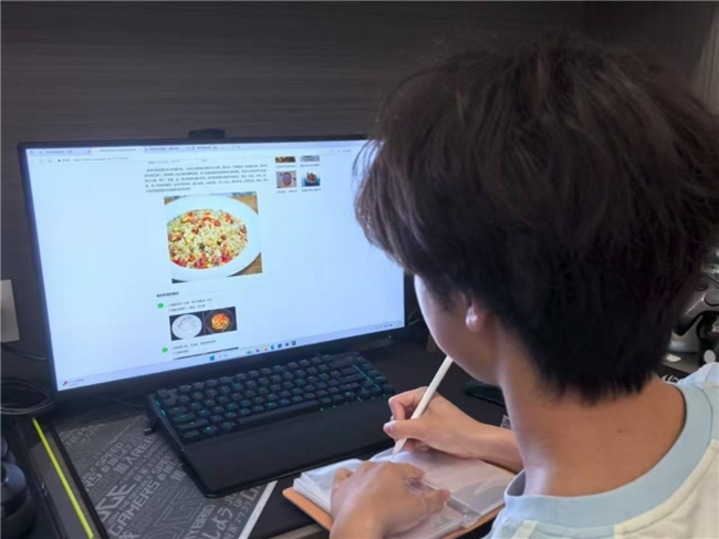 图为实践队员在记录淮扬菜制作细节