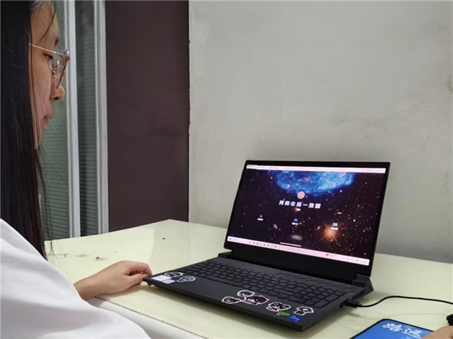 图为实践队员在通过博物馆官网查阅雕刻相关资料