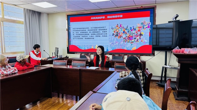 课程临近尾声,《我和我的祖国》悠扬而真挚的旋律在教室响起,实践团成员与孩子们共同放声歌唱。这歌声如同情感的桥梁,紧密连接着汉藏孩子们的心,让他们在共同的旋律中深切感受到中华民族大家庭的温暖与磅礴力量。临别之际,孩子们依依不舍,有的赠送自己得意的剪纸作品,有的拿出心爱的小玩偶,而实践团成员也为小朋友们准备了小礼物,鼓励他们继续努力学习,传承和弘扬中华优秀传统文化。在依依惜别中,这场以“民族团结一家亲”为主题的文化交流活动圆满落下帷幕。但这份跨越千里的民族情谊,却如同种子般在每个人心中生根发芽,激励着大家为构建和谐美好的中华民族大家庭而不断奋斗。