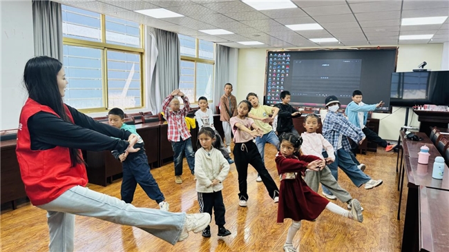 静态的艺术体验余韵未消,动态的文化展示又接踵而至。民族舞蹈教学课成为一场视觉与心灵的盛宴,志愿者将汉族传统舞蹈的柔美教给孩子们,小朋友们纷纷跟随节奏摇摆身体,模仿着每一个动作,教室里充满了欢乐的律动。随后,中华武术的刚劲风采点燃了孩子们的热情,志愿者们行云流水般的拳法、腿法和套路演练赢得了阵阵掌声,小朋友们跃跃欲试,在悉心指导下学得有模有样,那份认真的投入令人动容。