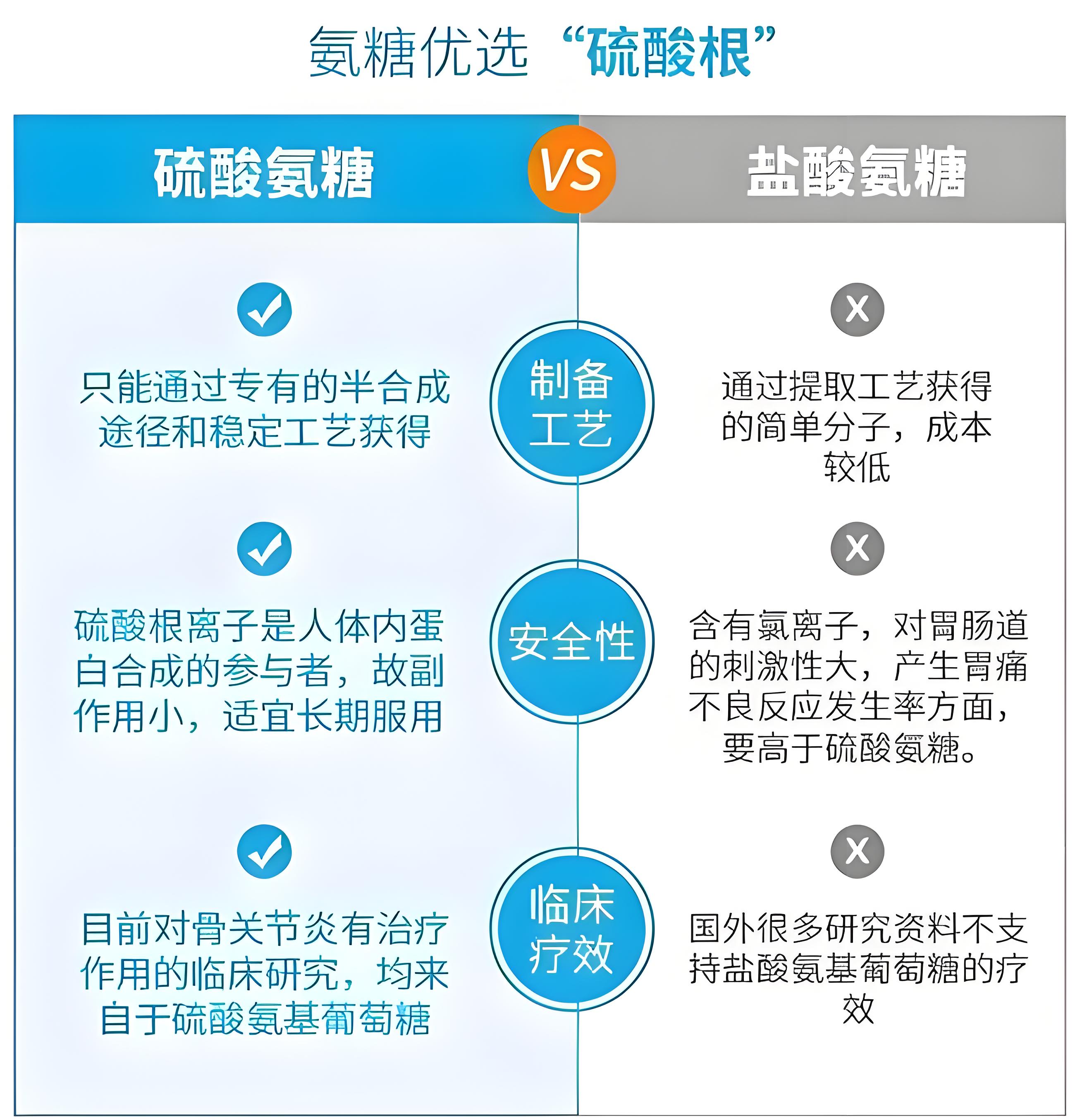 [1]《美国医学会杂志》(JAMA)2024年一项纳入33种骨关节炎常用药物的临床试验表明,硫酸氨糖在缓解膝骨关节炎疼痛、改善关节功能方面效果显著,且能延缓关节间隙变窄(骨关节炎进展的关键指标),而盐酸氨糖在延缓关节结构恶化方面的效果尚不明确。