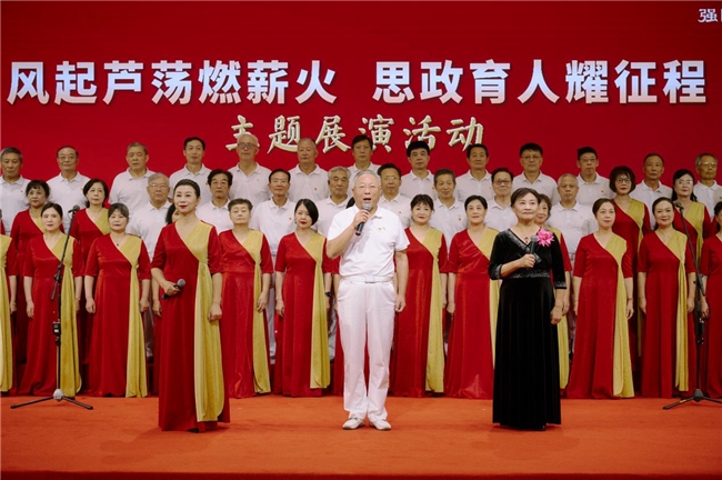 活动中,沙家浜革命历史纪念馆“小青松”宣讲员冯英泽深情讲述了《芦荡深处火种燃》,展现了在艰苦卓绝的斗争中,理想信念所迸发的磅礴伟力。情景演绎《革命人生的三次选择》生动刻画了革命先辈朱凡于生死考验面前那份永恒的坚定与无畏。经典京剧选段《智斗》、诗朗诵《诗颂风华》与大合唱《在灿烂阳光下》,韵味悠长的唱腔、铿锵有力的朗诵、恢弘激昂的合唱轮番上演,深情礼赞光辉历程,引发现场观众强烈共鸣,掌声经久不息。