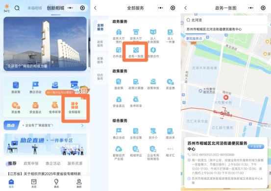 “我来之前就先在今日相城小程序的‘创新相城’模块里查了相关政策,线上了解了基本情况和所需材料,到这里后直接办理,节省了大量时间。”正在办理企业变更手续的市民王先生说,“在小程序的‘政务一张图’功能里,输入‘北河泾街道便民服务中心’,就能获得最新最准确的地址信息和导航指引,再也不怕跑错地方了。”