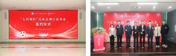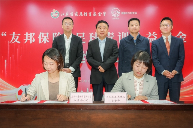 2025年10月22日,江苏省发展体育基金会联合友邦人寿保险有限公司江苏分公司,正式设立江苏省发展体育基金会“友邦保险足球青训公益基金”。江苏省发展体育基金会理事长陈震宁,江苏省体育局副局长张海涛,友邦人寿副总经理兼首席客户官、首席健康业务官张敏,友邦人寿江苏分公司总经理杨东强等领导和嘉宾以及江苏足球青训球员代表出席签约活动。