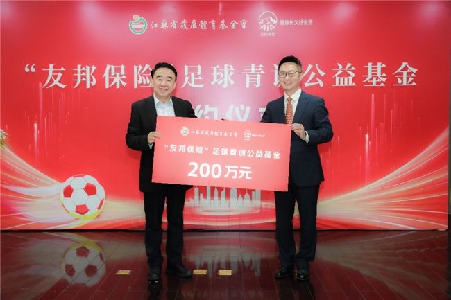 本次友邦人寿江苏分公司向省发展体育基金会捐赠200万元,设立江苏省发展体育基金会“友邦保险足球青训公益基金”,旨在以“公益+足球”的理念,聚焦足球运动普及,围绕“足球青训人才培养”核心目标,协同相关专业资源,面向江苏地级市,通过开展青训队伍对外交流、教练员培训、足球公益赛事等活动,支持江苏足球青训工作,积极探索社会力量助力青少年足球后备人才培养新路径,助推江苏体育事业高质量发展。