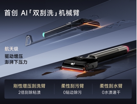 追觅科技的专利布局始终围绕用户真实生活场景展开,致力于解决传统清洁方式中长期存在的痛点。其技术创新的最大特征在于系统性——从智能感知到机械执行,从化学清洁到物理消杀,形成了完整的技术闭环。例如旗舰店卖的比较火产品T60 Ultra和H60 Ultra,便是多项行业首创科技的集大成者。针对家具边缘、墙角等难以触及的区域,新一代T60 Ultra通过自主研发的AI机械臂技术,实现了清洁组件在机器行走过程中的主动横向延伸与智能加压贴合,使机器能够模拟人手擦洗动作,从而将“沿边通过”提升为“沿边净洗”,显著提升了清洁效果的彻底性。