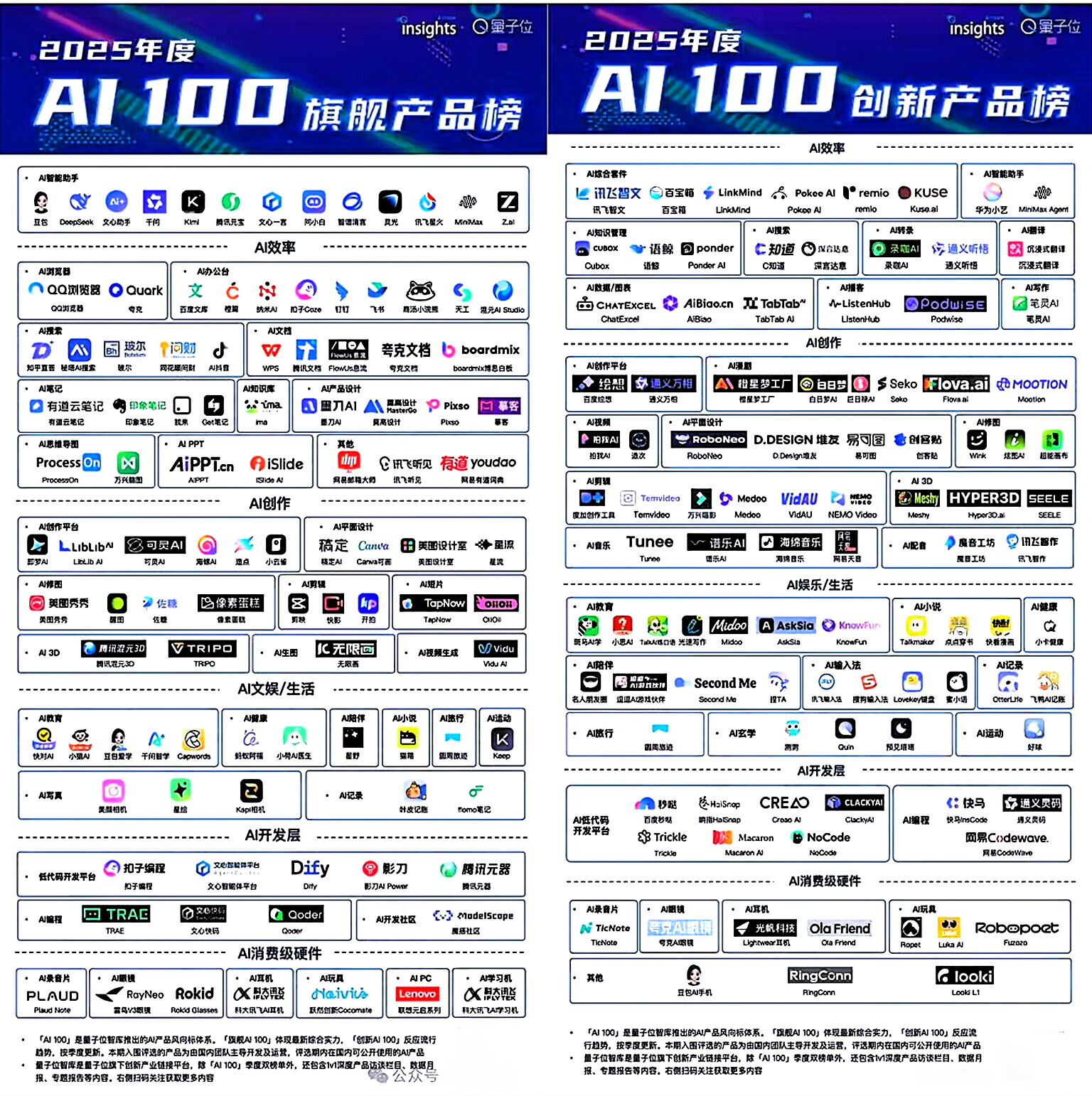 据悉,AI 100 是量子位智库推出的AI产品风向标系列内容,由两大榜单构成,分别是聚焦 2025全年表现、评选出综合能力最强的旗舰AI100,以及代表AI技术前沿方向的创新AI100。