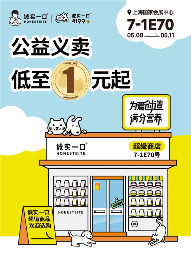 5月8-11日,诚实一口诚邀您莅临上海国家会展中心7-1E70展位,共同见证宠物食品的"鲜"时代。如您无法亲临现场,欢迎通过官方平台观看实时展会直播,精彩内容不容错过!