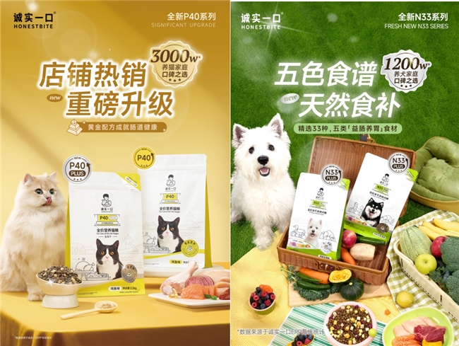 据了解,诚实一口P40 PLUS猫粮和N33 PLUS狗粮也在近期全面升级,共同亮相它博会。