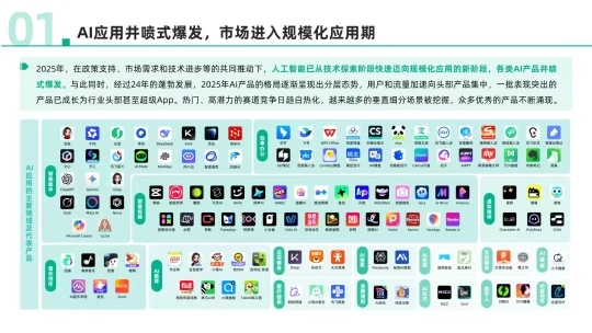 数据发布方认为,2025年AI应用井喷式爆发,市场进入规模化应用期,AI的应用能力正加速向图像视频、效率办公等高价值垂直领域纵深渗透。