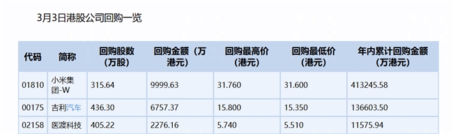 3月4日,医渡科技(02158.HK)延续强劲回购势头。公告显示,公司当日以每股约5.51港元的价格回购近650万股,总耗资超3500万港元,单日回购金额创本年度回购启动以来新高。据媒体统计,此前一日(3月3日),公司以2276.16万港元的回购规模位列当日港股回购榜第三位,仅次于小米集团-W和吉利汽车。
