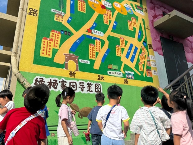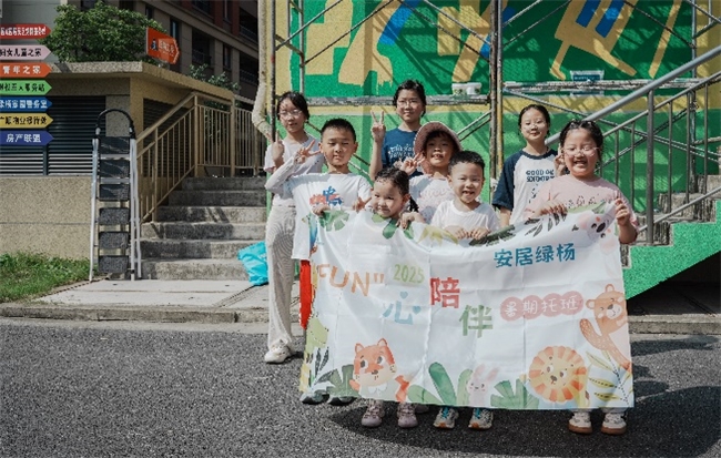 面对双职工家庭的“看护难”,绿杨家园依托自治金推出暑期全日托管服务,以安居绿杨“fun心陪伴”为主题,开展儿童友好活动,让住在绿杨家园的孩子have fun,家长们也把心放。在自治金活动中,社区内的多元力量都凝聚起来,退休教师、大学生志愿者纷纷加入,带领孩子们做实验、学吉他、逛博物馆。项目组还将闲置墙面、空地改造为彩绘课堂和地面游戏区,并举办儿童跳蚤市场,让社区真正成为儿童友好、家长放心的成长乐园。