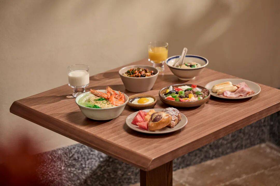 早餐方面,亚朵打造的属地早餐已成为一大招牌,北京店里炸酱面是特色,南京店里有鸭血粉丝汤,武汉店里灵魂早餐是热干面。有人去重庆专门住亚朵,就是为了能吃上一碗红汤抄手。还有人去兰州出差,吃到了本地特色兰州牛肉面。在亚朵,消费者不出门就能品尝到当地特色美食,如果赶早班机,来不及在餐厅用餐,还能享受到打包早餐的服务。