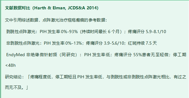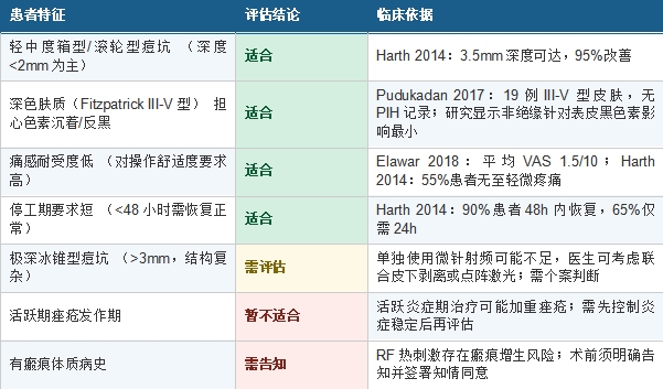 六、综合选型结论如果你的痘坑属于轻中度(箱型/滚轮型为主),肤质偏深(Fitzpatrick III-V型)或敏感,且对痛感和恢复期有要求: