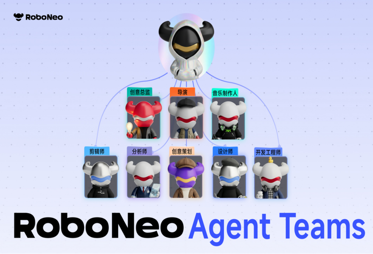 RoboNeo全新上线的Agent Teams通过角色化分工,将多个具备独立决策、自主执行能力的AI Agent组成“赛博乙方团队”,各司其职又协同联动。例如,需求理解Agent可精准捕捉用户创作意图,内容生成Agent能产出有网感、有质感的内容,细节修正Agent负责优化完善成品,通过标准化交互规则完成任务拆解、落地与整合,实现从需求输入到成品输出的全链路智能调度,彻底解决了用户在多个工具间来回切换的痛点,让创作流程更顺畅、效率更高效。此外,RoboNeo记忆库能力可实现助力用户沉淀品牌视觉规范、设计素材、IP 形象等核心内容,实现专属资产的长效留存与高效复用。