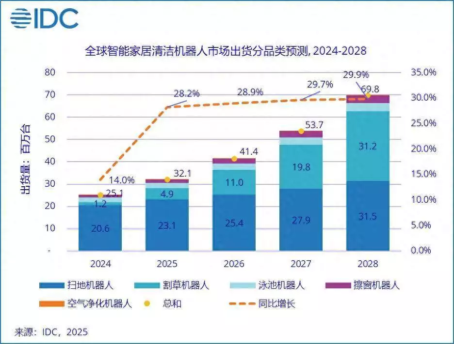 IDC预测,2025年全球智能家居清洁机器人出货量将达3210万台,同比增长28.2%,到2028年五年复合增长率达26%。这一增长将由三大动力驱动: